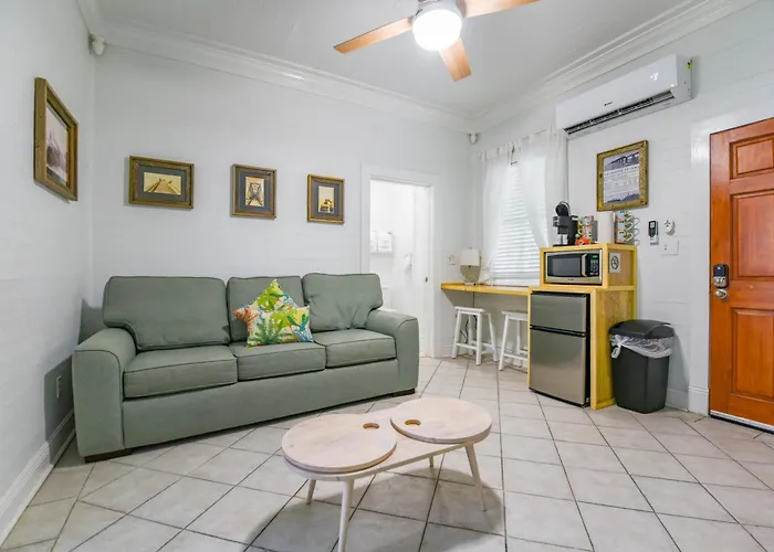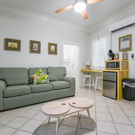 Équipé d'une cafetière/théière et d'une kitchenette, la résidence propose un micro-ondes et un réfrigérateur. L'aéroport de Key West est à une distance de 10 minutes en voiture, et l'arrêt de bus Caroline Street & William Street est pas trop loin de la résidence spacieuse.